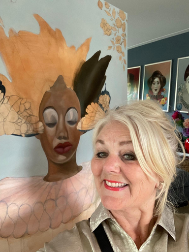 Een echte laatbloeier want ze begon pas in 2009 met schilderen.